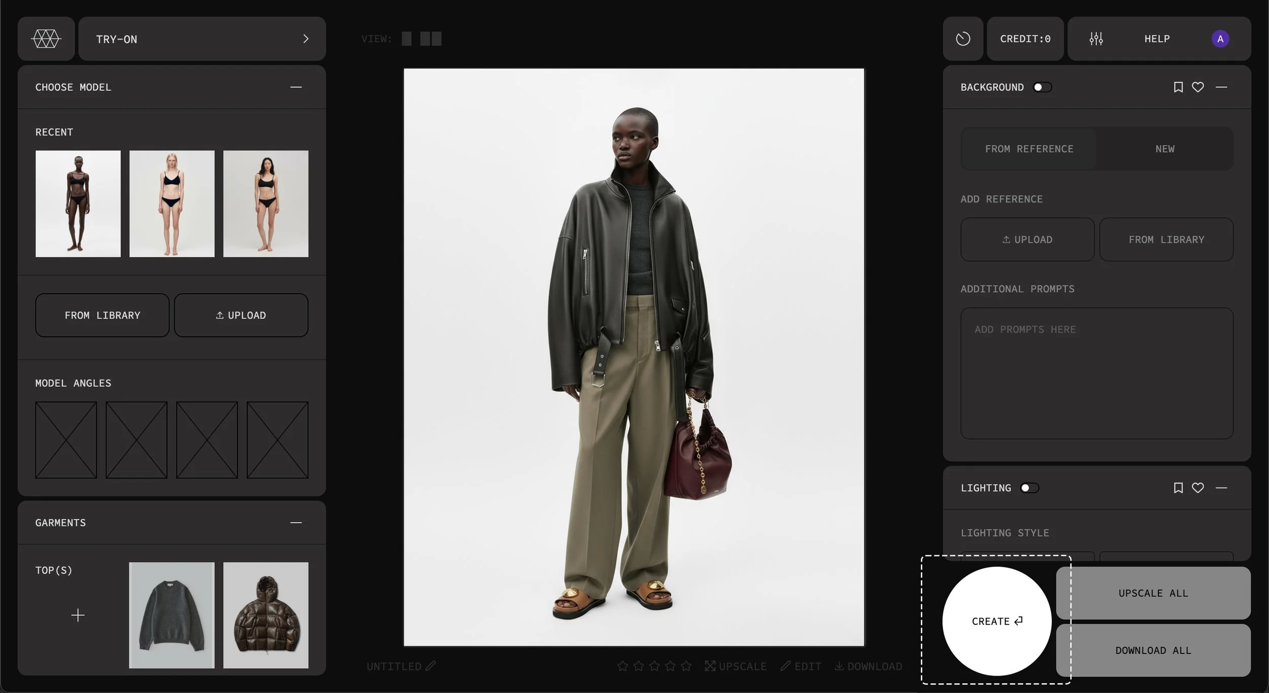 1. THE FIRST STEP IN CREATING E-COMMERCE IMAGERY IS TO CHOOSE YOUR MODEL. YOU CAN SELECT FROM OUR GYODI MODEL LIBRARY, UPLOAD YOUR OWN MODEL OR CREATE YOUR OWN MODEL IN OUR CREATE A MODEL FEATURE (SEE BELOW)